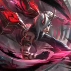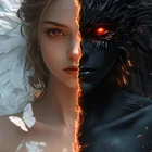 - 暗黑风格,红眸,齐刘海长发冷酷感女生ai插画壁纸图片