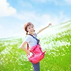- 粉色双马尾动漫少女咬柠檬发光插画