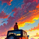 - 动漫男性角色 金色短发蓝眼红镜红色背景插画